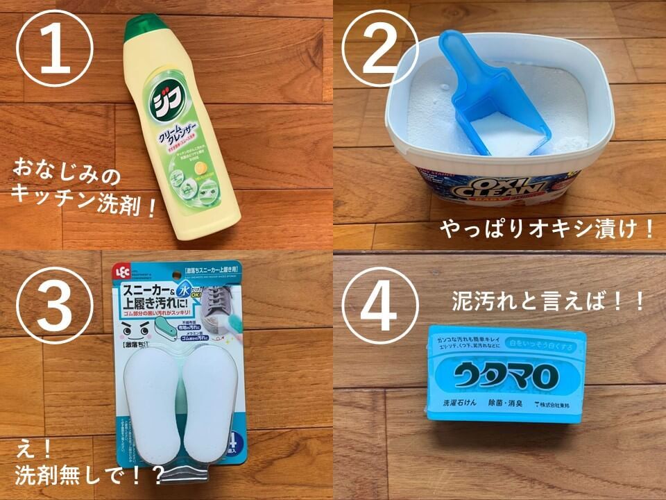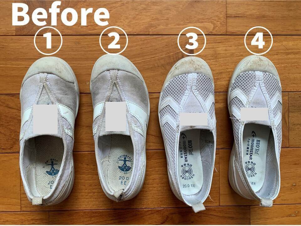 少しでも楽に上履きが白くなるものがないかと、複数の洗剤を試したことがある人も多いのではないでしょうか。そこで、上履き洗いに効果があるといわれている次の4種類の方法で上履き洗いの労力や効果を比較してみました!