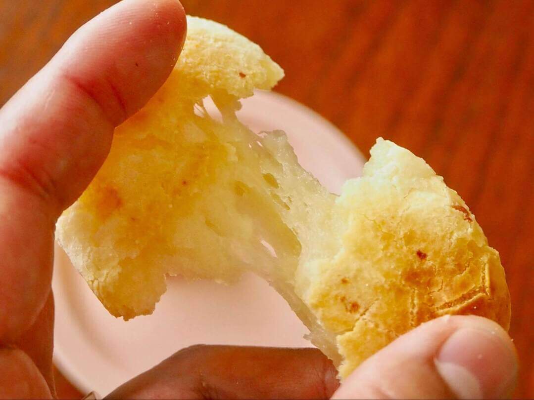 ポンデケージョとはブラジル生まれの「チーズパン」のこと。小麦粉ではなくタピオカ粉を使って作るため、もっちもちの食感が特徴です。