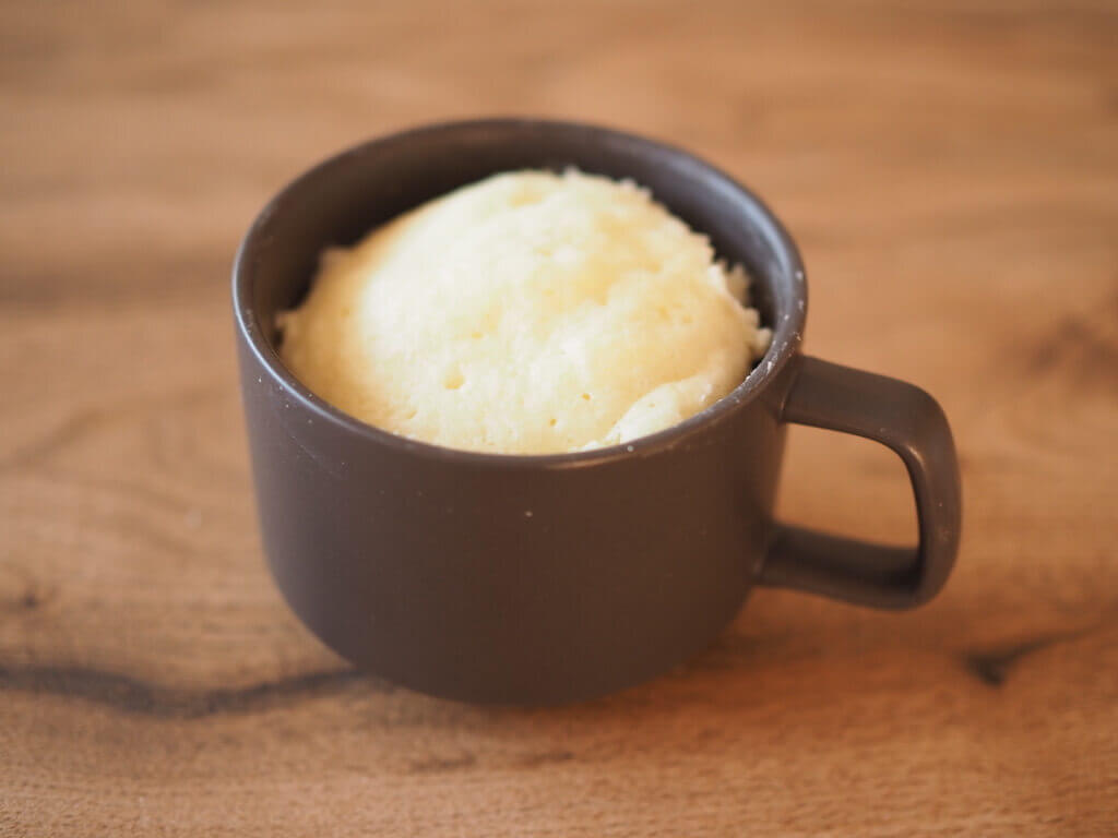 ふわふわにふくらみました。カップの厚みなどにより火の通り具合が変わるため、竹串などさして生の生地がくっついてこないか確認すると安心です。