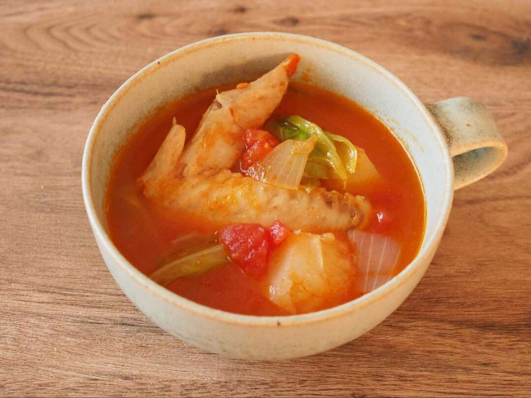 手羽先から出るだしでトマトの酸味がまろやかに感じられ、子どもも喜んで食べてくれそう。これからの季節、こんな温かいスープでお腹の中から体をしっかり温めれば、風邪予防にもつながりますね。