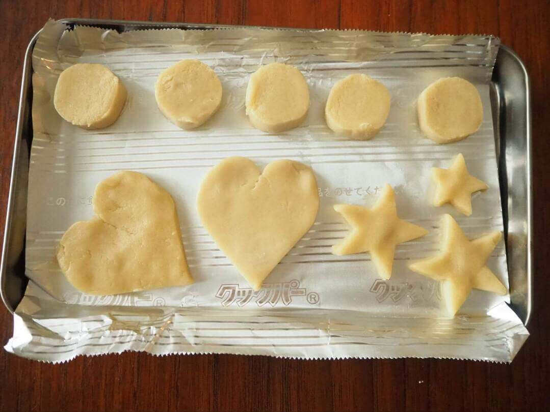 常温で置いておけば10分くらいで柔らかくなってくるので、棒状のまま包丁で1cmくらいの厚さに切れば、アイスボックスクッキーに。手で平たくしてクッキー型で抜いて、オリジナルクッキーを作っても、子どもは大喜びですね。