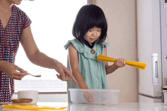こちらの「電子レンジパスタ調理器」では、子どもがパスタやお水、塩を入れてレンジでチン!
