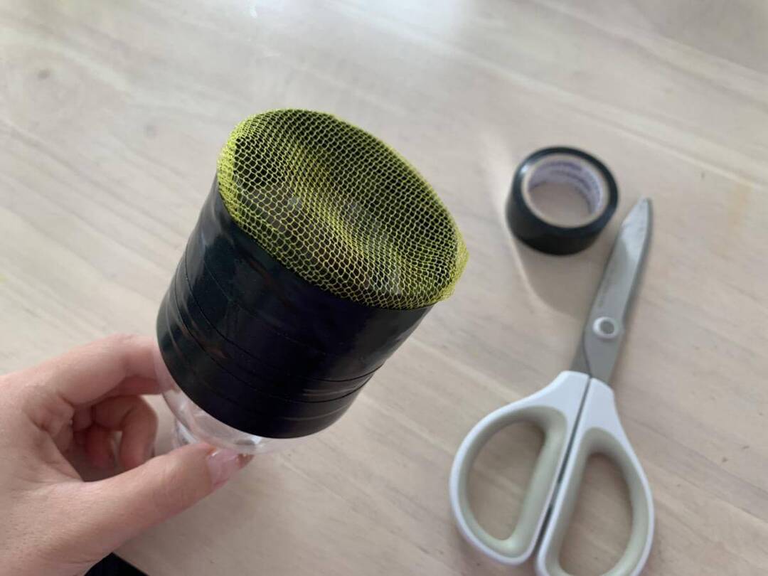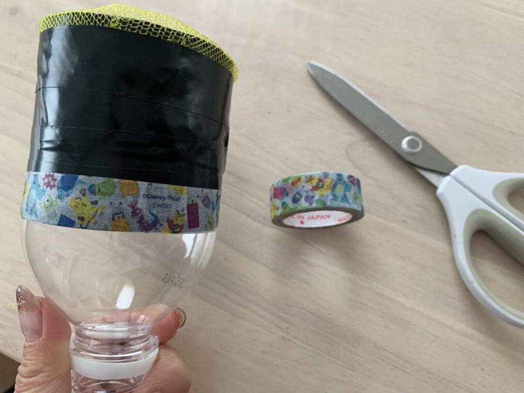 ペットボトルは飲み口がある方を使用します。念のため切り口はビニールテープで保護しておくことをおすすめします。