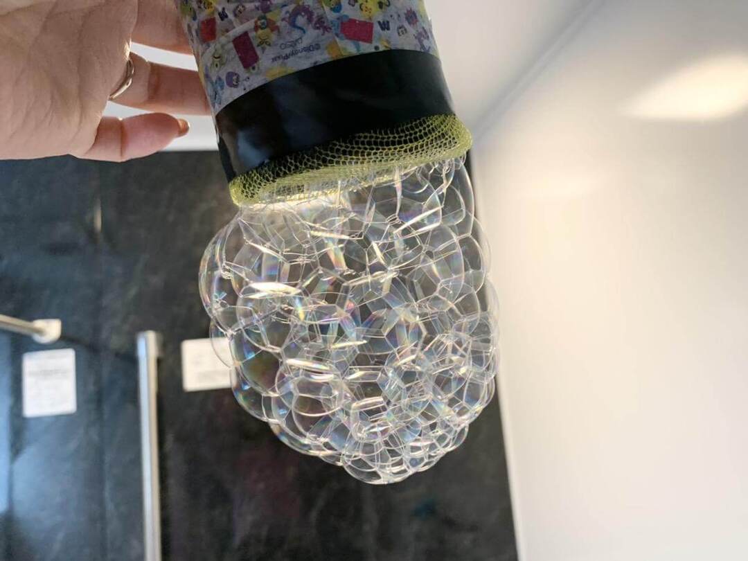 試しに軽くひと吹きしてみたら泡が出ず、「あれ…?失敗した?」と思いましたが、ペットボトルの中に一気に吹き込むと、モクモクと泡がたっぷり出てきました!