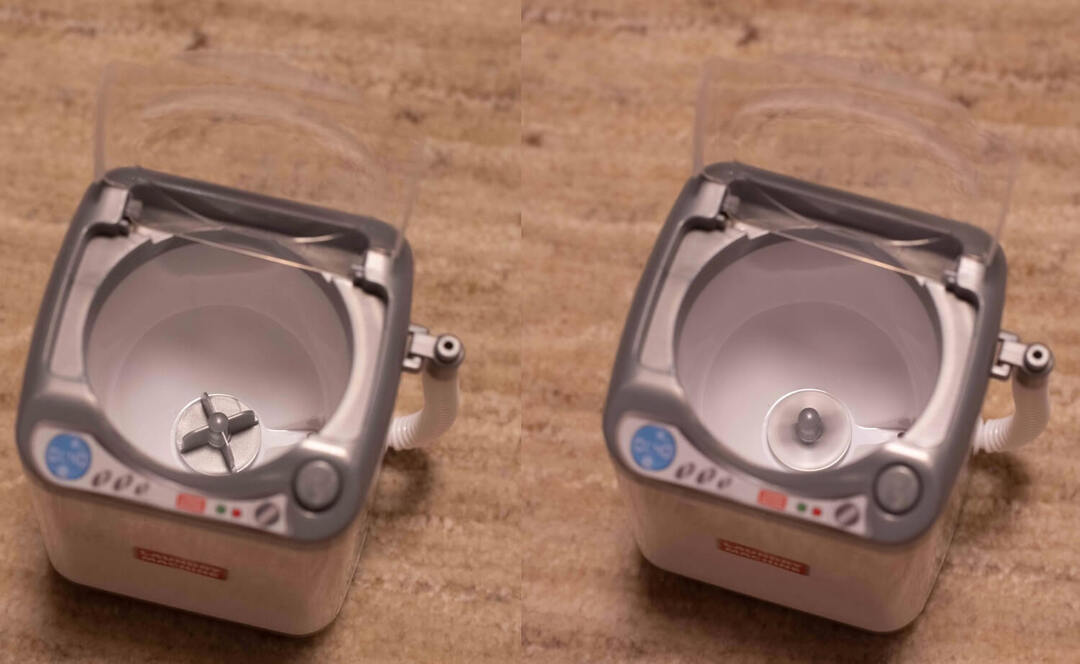 旧モデルの方がスムーズに回っている印象を受けますが、どちらかというと新モデルの方がより本物の洗濯機の音に近い感じがします!(※)