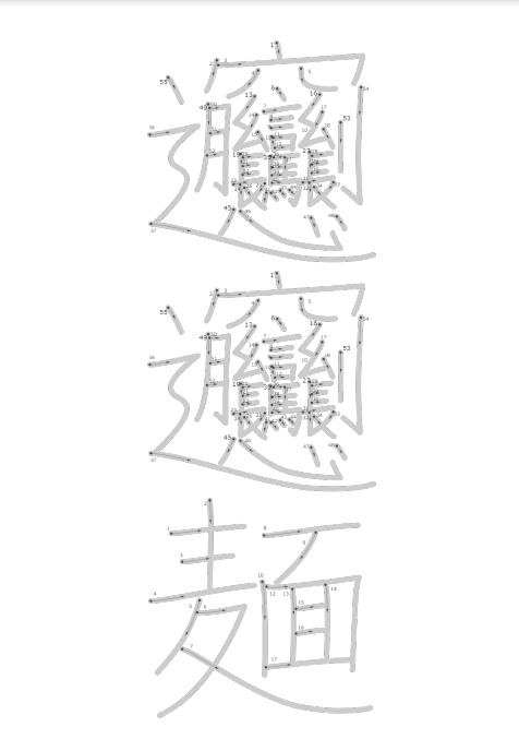 書けるだけで一芸になりそうな「ビャンビャン麺」、大人もいっしょに挑戦してみてはいかがでしょうか?こちらももちろん文字の大きさやパターンを選べます。 これをきっかけに「薔薇」や「竈門」など難しい漢字にハマっちゃうかも…?