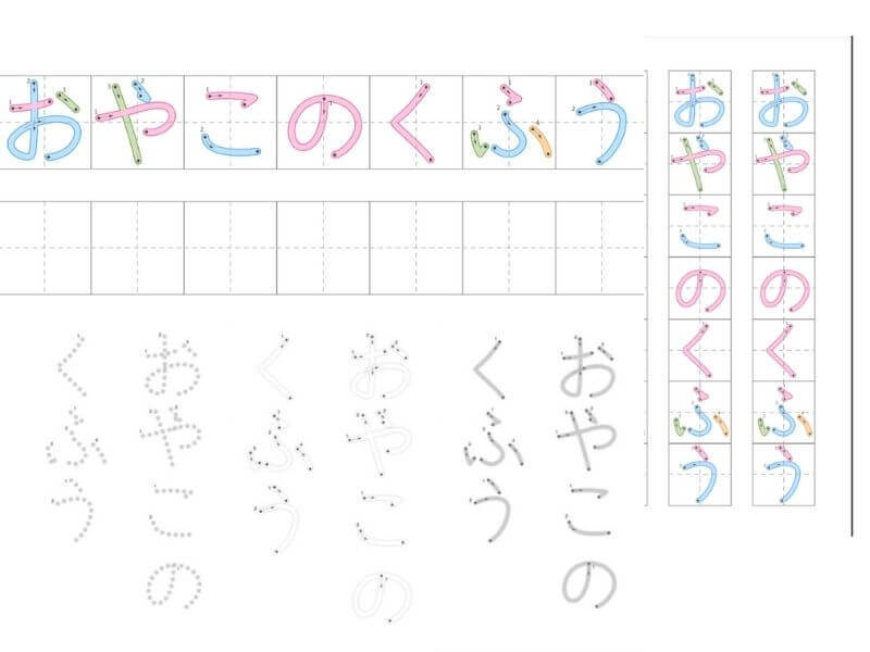 文字のパターンもよくあるグレーのなぞり線のほか、枠線のみ、点線の3種類から選べます。こだわりや特性のある子にも対応ができそうですよね。