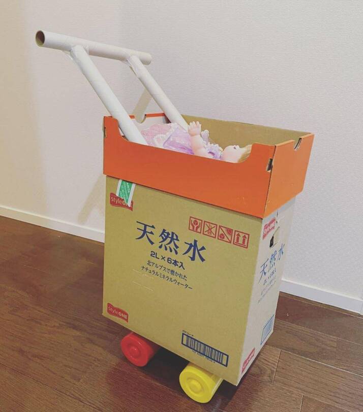 こちらは、5歳の娘さんのリクエストでママが作った段ボール製ベビーカー。
