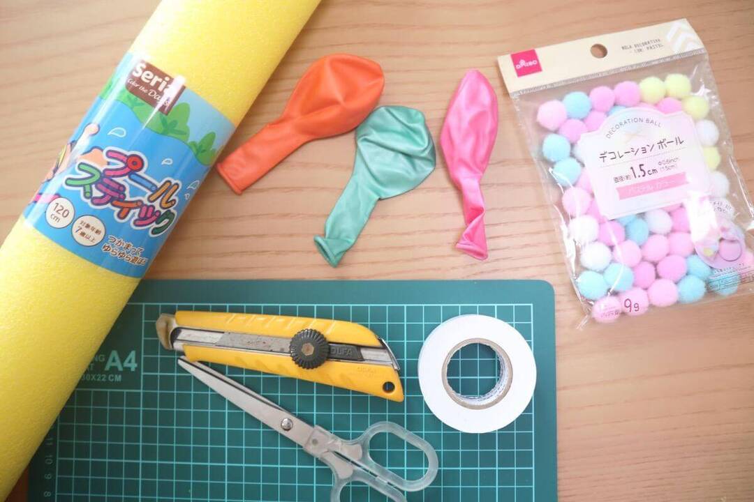 わが子も興味津々の様子でしたが、まだ小さいため購入は見送ることに。しかし、ママ友から「セリアのプールスティックと風船を使ってシューティングおもちゃを手作りできる」という情報が!