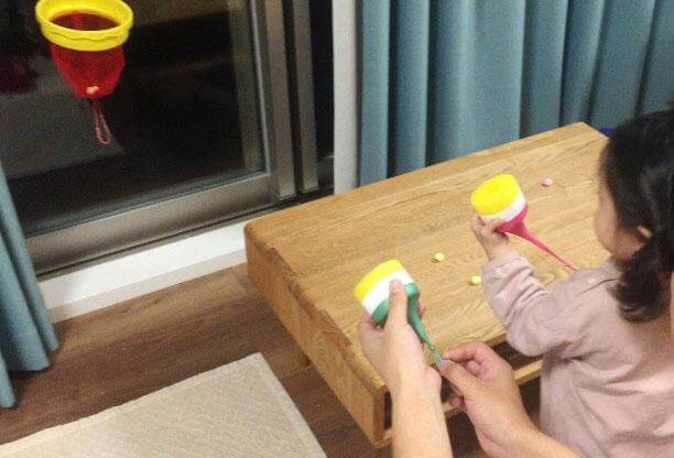 100均アイテムで簡単に作れて長く遊べるこのおもちゃ。コスパも良いため、親子でお気に入りになりました♪