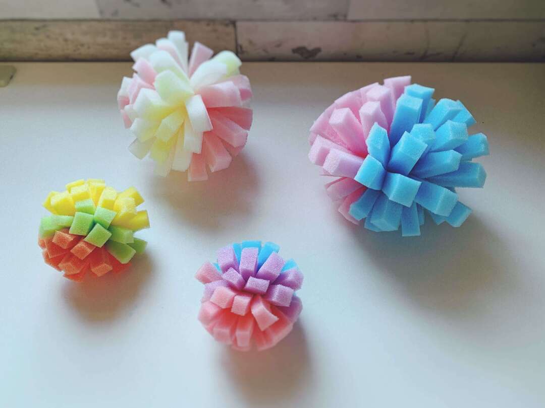 室内遊びにもぴったりな「ふわふわスポンジボール」の作り方を紹介します。