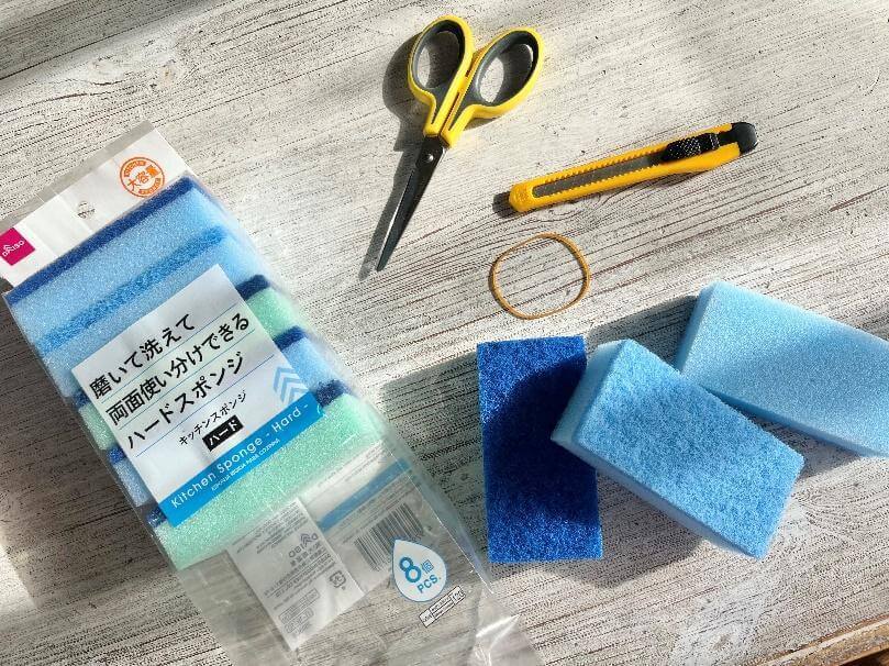 特別な材料は必要ありません。スポンジと輪ゴムさえあれば、すぐに作ることができます。