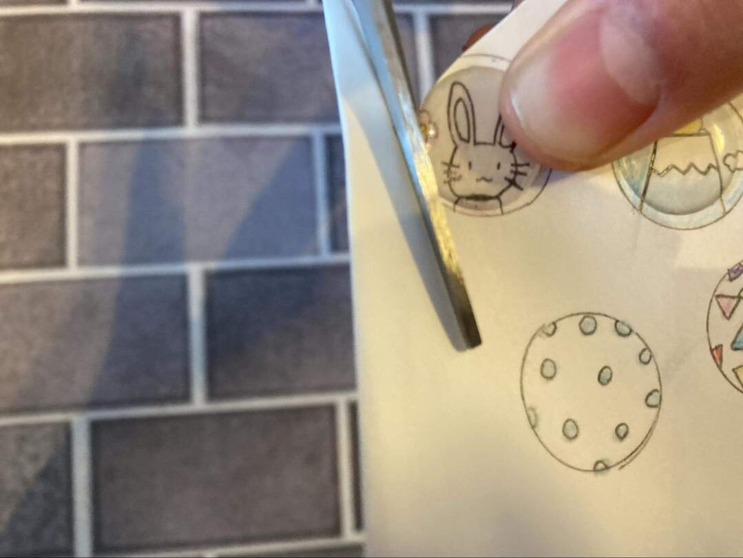 そこで先にバッジの大きさに印をした紙に、子どもに絵を描いてもらいました。サイズさえ合えば、描いてある絵を使うことも可能です。