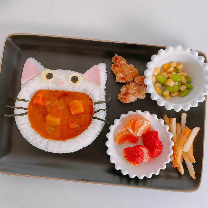 お子さんに好評だったというお誕生日ごはん。このねこのように大きなお口でパクパク食べてくれたらうれしいですよね。