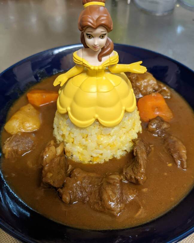 こちらはset.blaze12さんがハロウィンに作ったデコカレー。カレーの真ん中にいるのは、サフランライスを黄色いドレスに見立てた、美女と野獣のベルです!