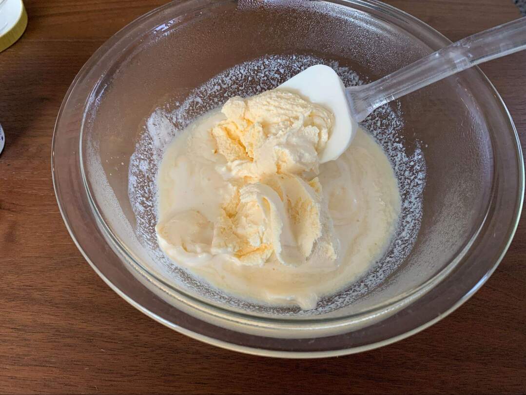 紹介されていた作り方ではアイスクリームは200gとのことですが、今回はバニラアイス1個(180g弱)を使いました。