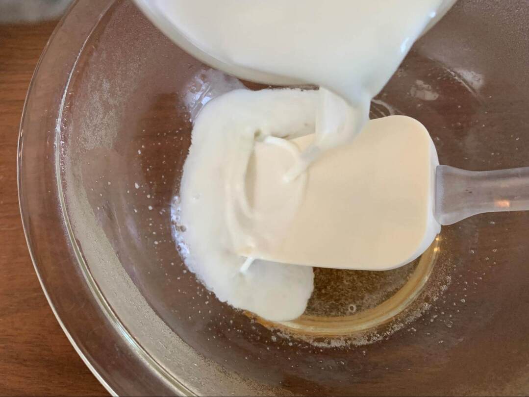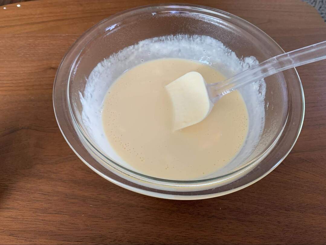 溶けたグミに牛乳70mlを加えて混ぜます。