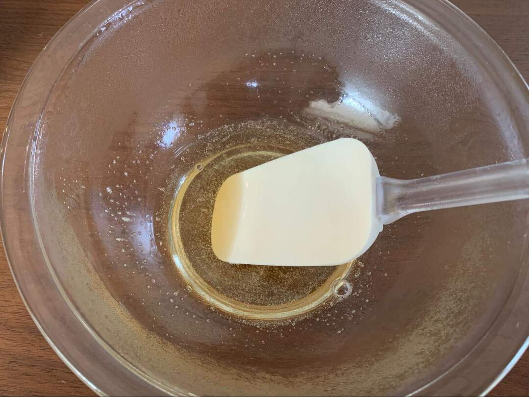 ヘラやスプーンなどで溶け残りがないように混ぜます。