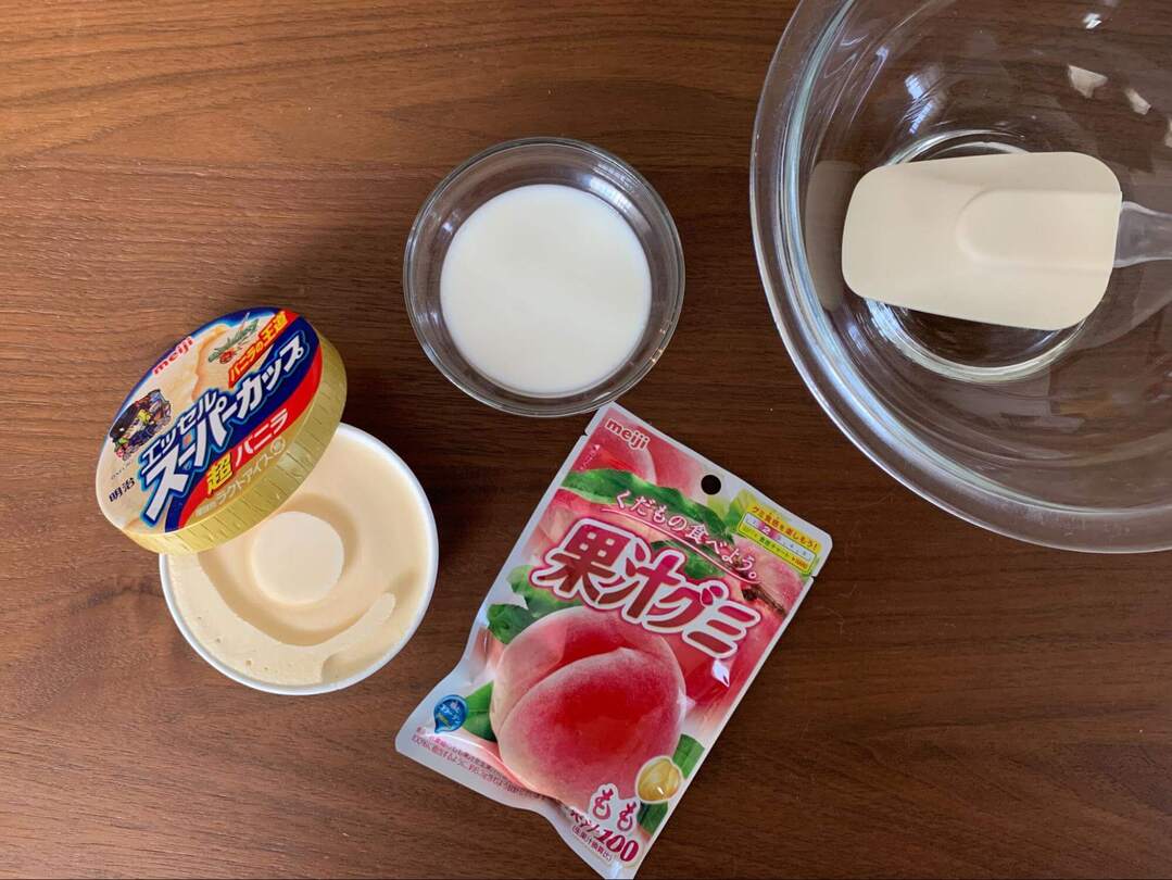 果汁グミのもも味とバニラアイスを使って、お店で出てきそうなおいしい"超濃厚ムース"ができるというのです!