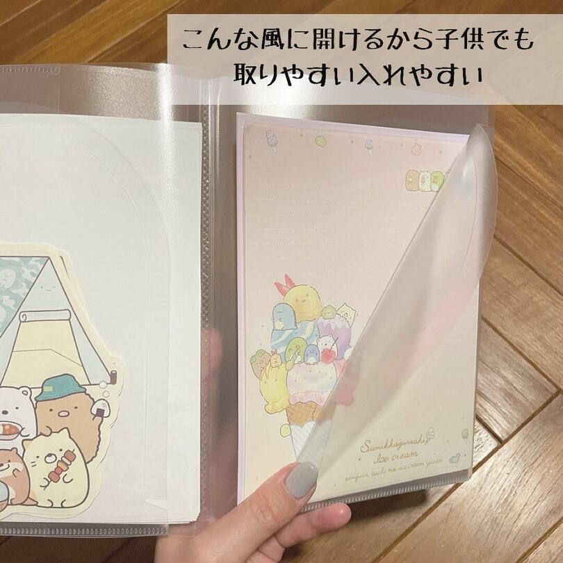 guttiiさんが編み出したのは無印良品の「スリムポケットホルダーA5」を使った収納方法。一緒に入れているのは、お手紙セット。たしかに手紙を書くときにシールを使う機会は多いですよね。