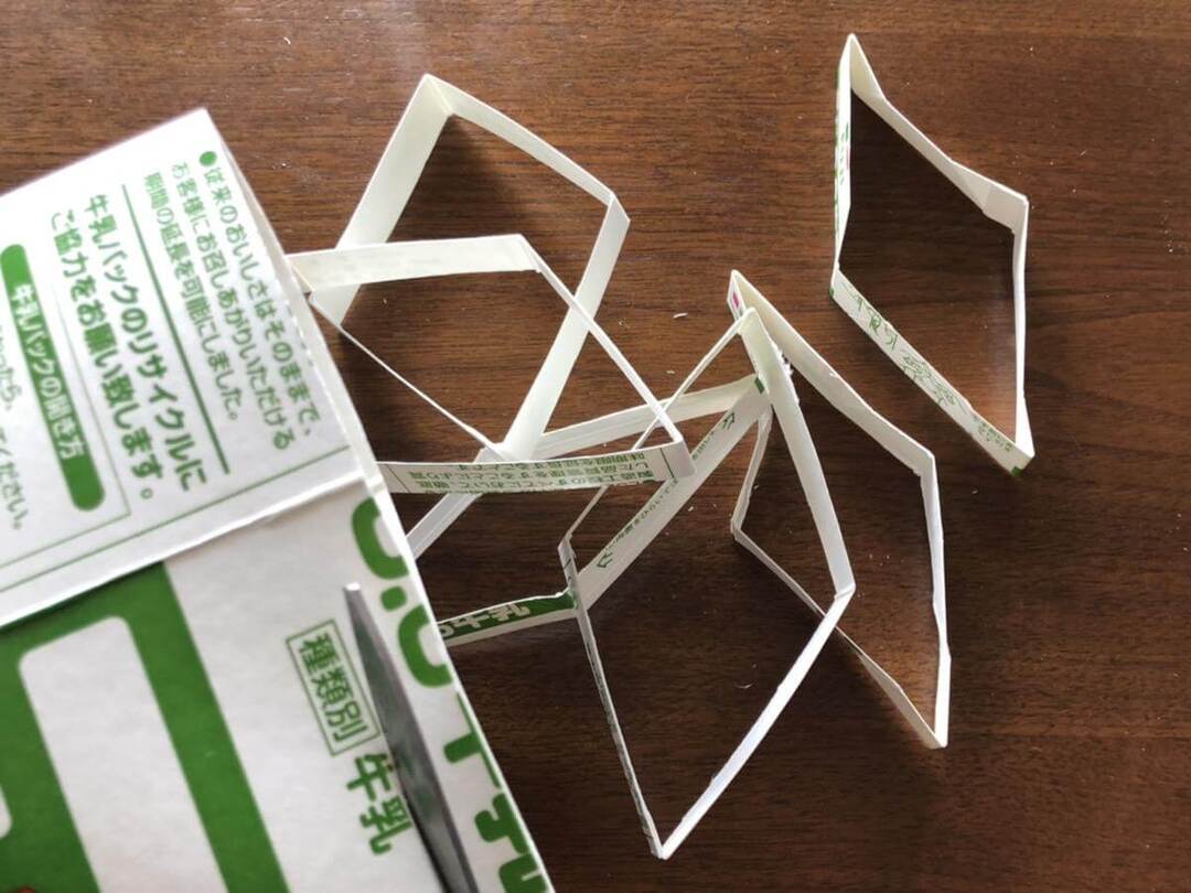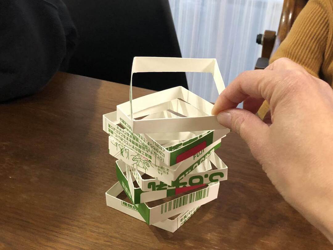 ・カットした牛乳パックを順番に積んでいき、崩した人が負け
