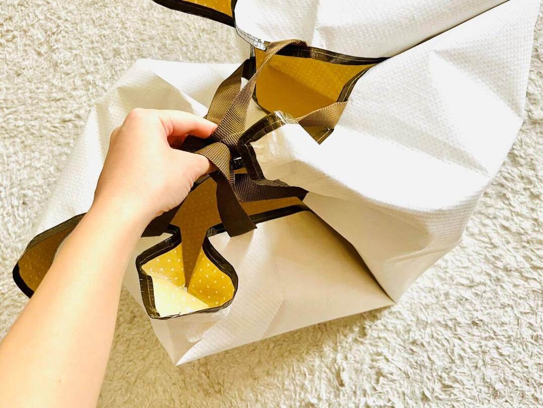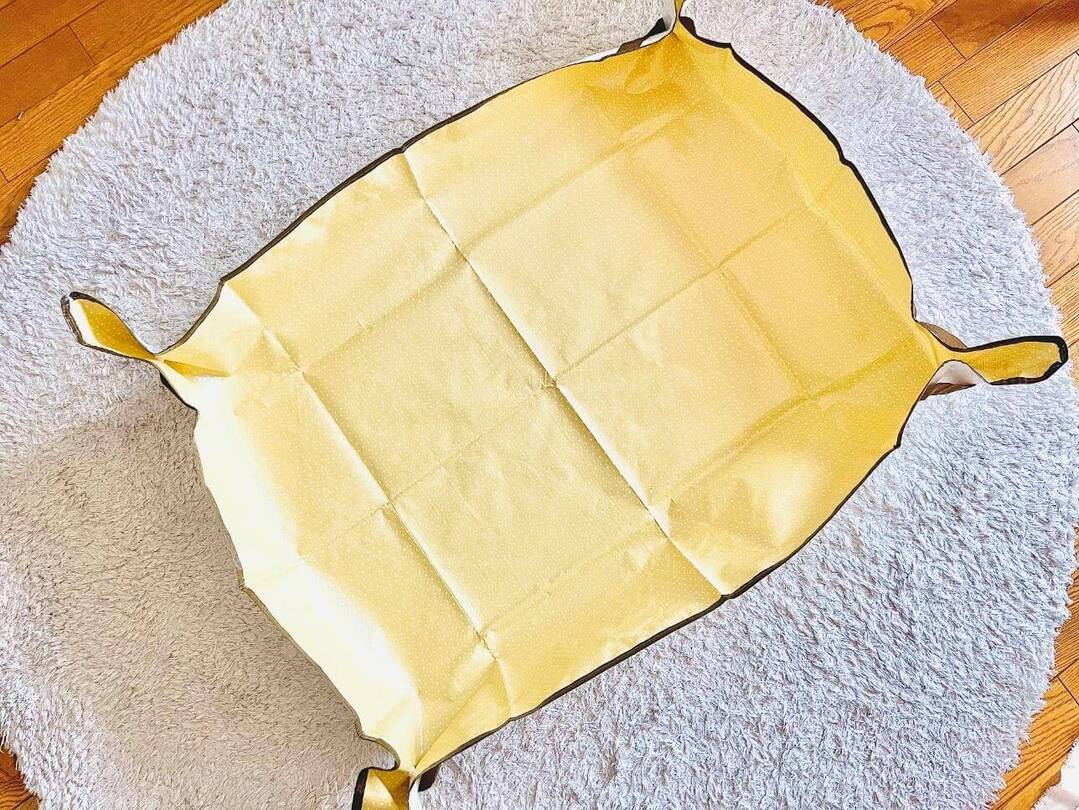 この園芸シート、実は四隅に取っ手が付いています。この取っ手を集めて持てば、持ち運ぶことも可能。掃除をするから違う場所でやってほしい…なんていう時でもさっと移動ができて便利。