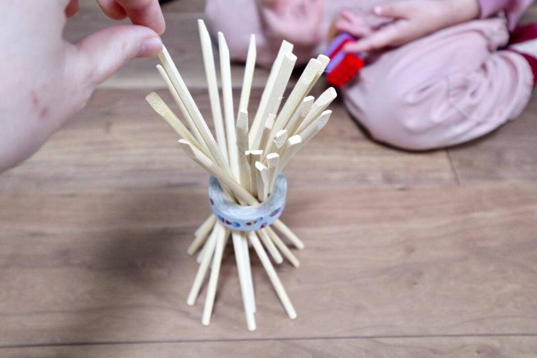 棒倒しはスティッキーという有名な海外の木製おもちゃがありますが、なかなかに高価。割り箸で手作りできるなんていいですよね。