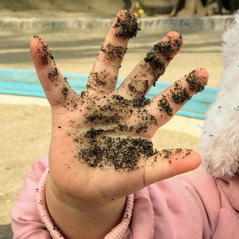 どろんこ汚れがついたら、慌てずにまず乾くまで待ちます。
