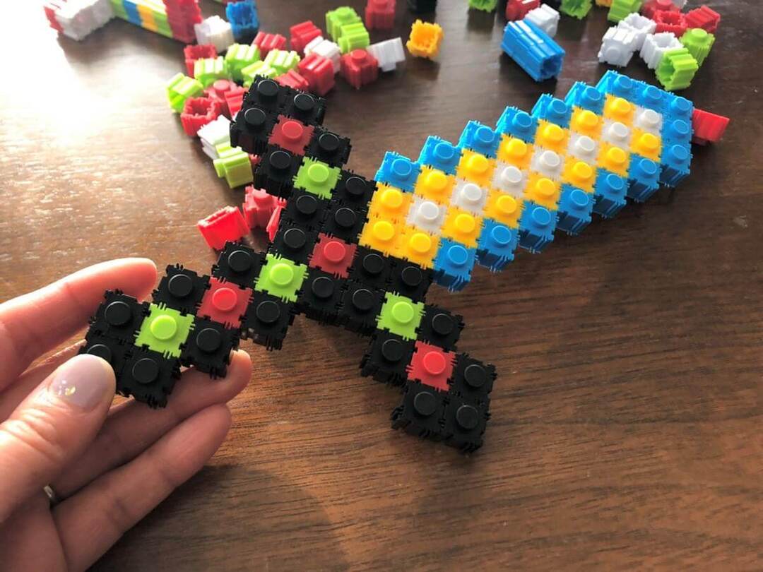 次に、おやこでパッケージにあった『剣』に挑戦してみました。刃の部分を息子が、持ち手の部分を筆者が担当。