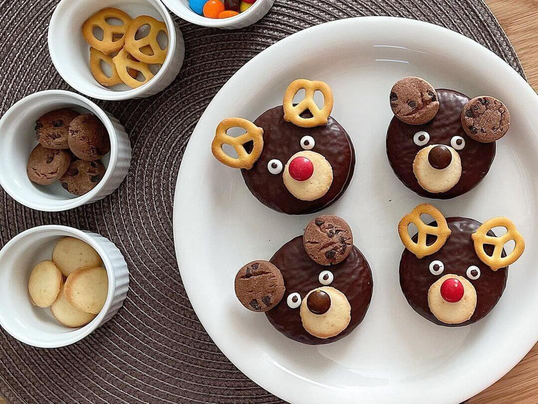 続いてはmeguさんがクリスマスに作ったチョコパイアレンジ!くまさんと、耳を小さなプレッツェルにしたトナカイです。