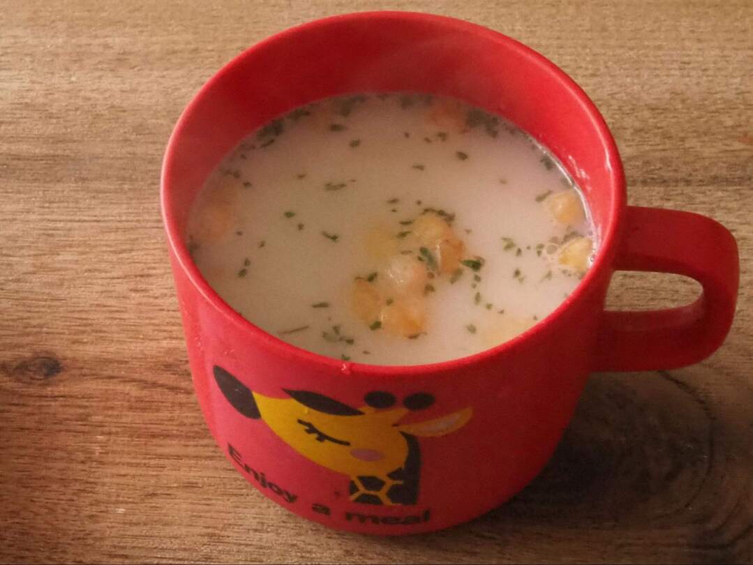 1袋を150mlの湯で溶くとあるので、ちょっと幼児には多いかもと思い、2/3袋を100mlの湯で溶きました。これで47kcal。思ったより濃厚で結構お腹にたまりそう。粉っぽさもなくクリーミーです。食欲のない寒い朝にもぴったりです。