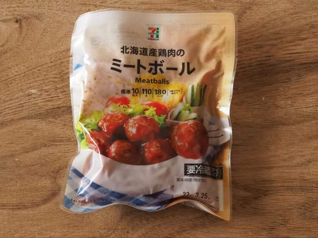 国産の鶏肉を使ったミートボールが10個入って105円というリーズナブルな価格にびっくり!袋ごと湯煎か、袋から出してレンジで温めます。