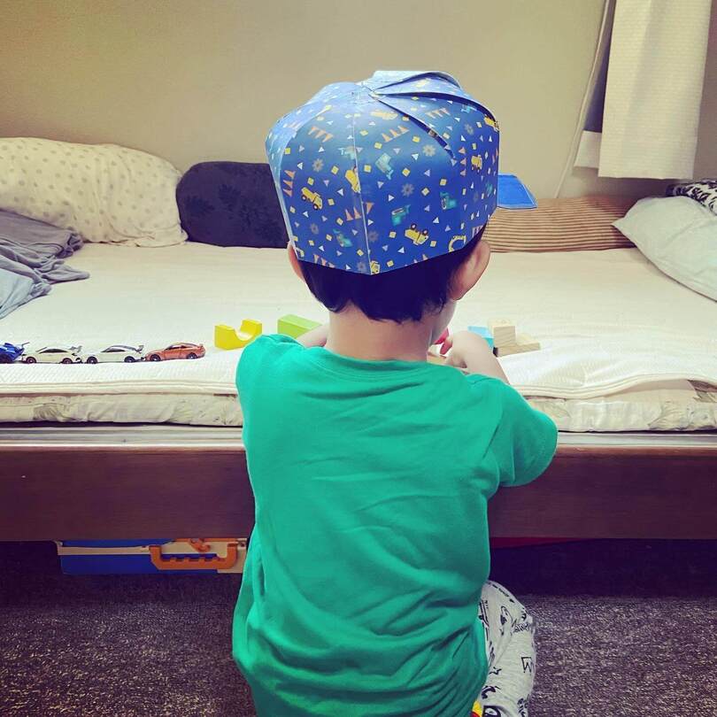 お子さんのためにたくさんの工作を行っているりこさん。こちらの帽子も雪印メグミルクのサイトを参考にしつつ、製作したのだそう。 帽子のクオリティが高いだけでなく、はたらく車が描かれた総柄のオリジナル帽子にアレンジしているのがすてきですよね!
