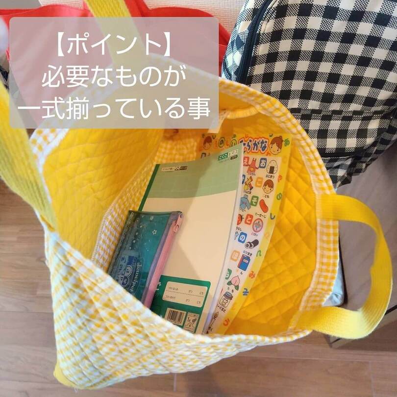 教室用のバッグにノートや筆記用具など一式をまとめて入れておくことで、子どもがやりたいと思ったときにすぐ取り組むことができ、せっかくのやる気を削ぐことがありません。