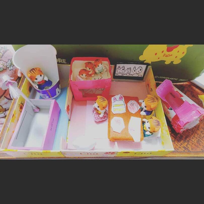 続いては、シルバニアファミリーのおうちを作ったChiaki Sさんのアイデア。6歳の娘さんと一緒に、お部屋をティッシュの箱で手作りしたんだそう。