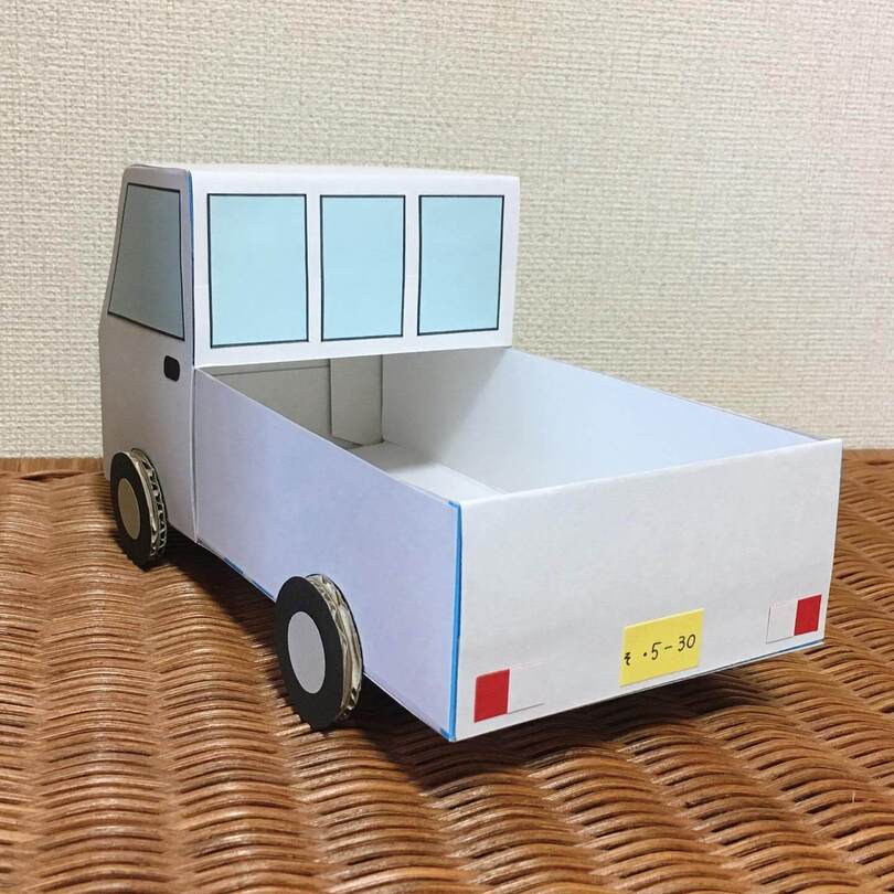 こちらは車好きな甥っ子のために作ったという軽トラ。ティッシュ箱は加工しやすい厚さなので、車のような曲線も表現しやすいですよね!