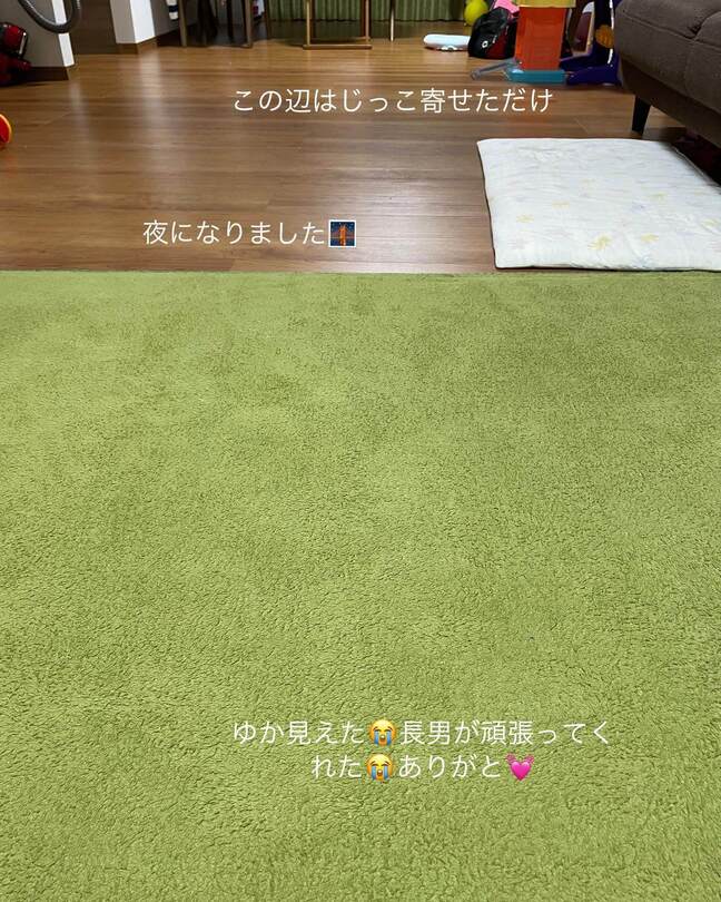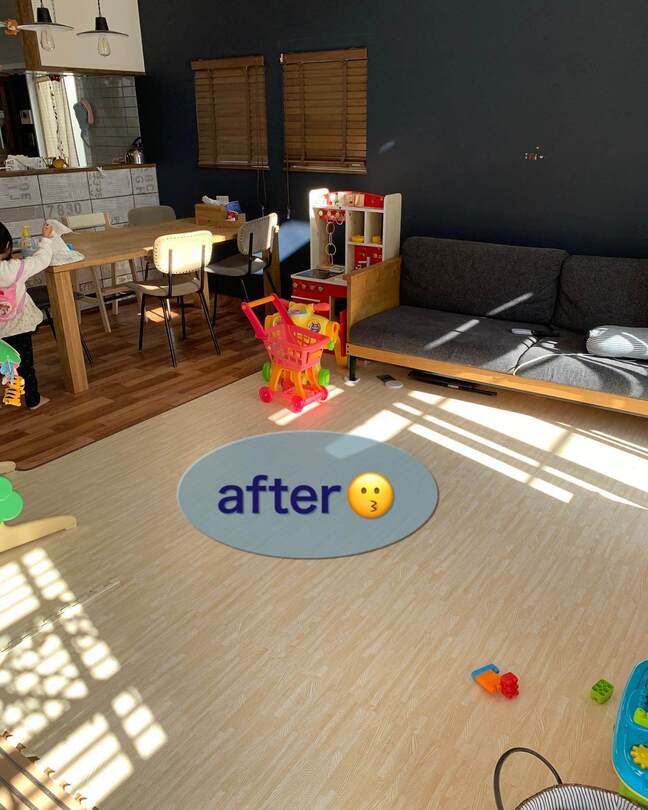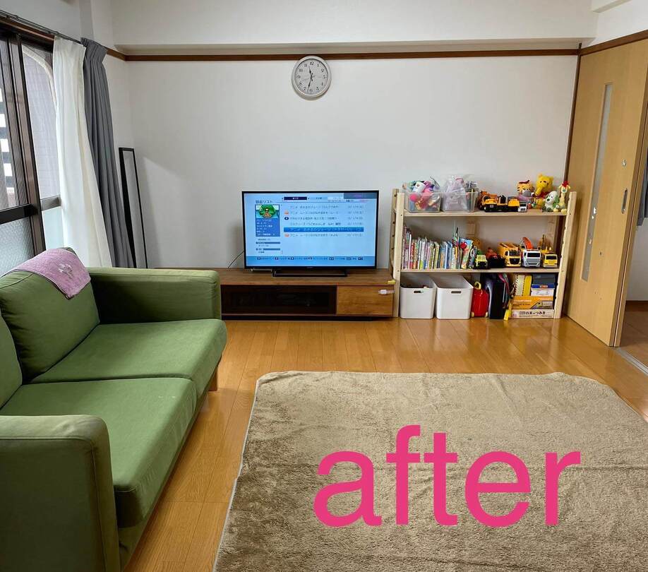 おもちゃがなくなったラグマットとフローリングが輝いて見えます!