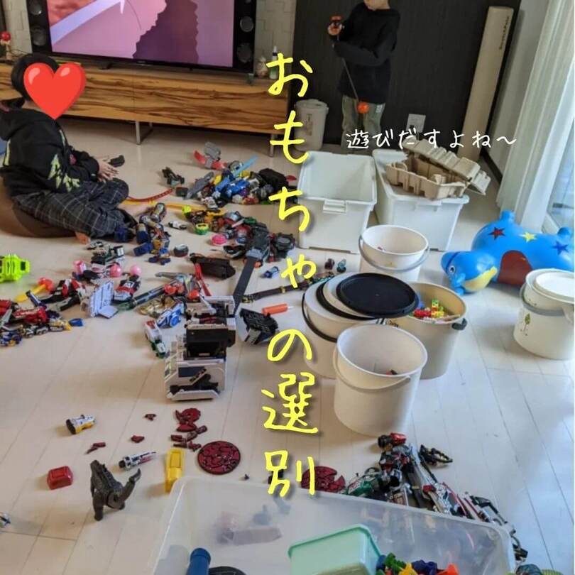 こちらのお宅ではおもちゃを捨てる選別作業中!