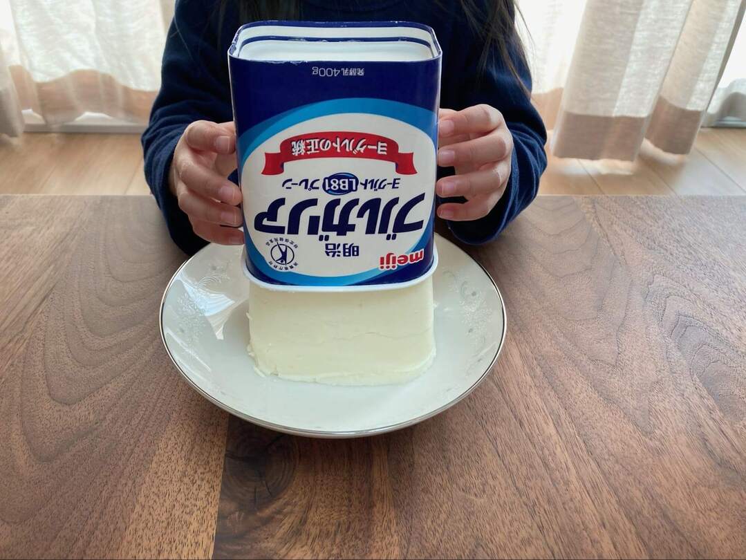 ヨーグルトのパックなので、子どもはヨーグルトが入っていると思ったら、プルンと固まったチーズケーキが出てくるのでびっくり!喜びますよ。
