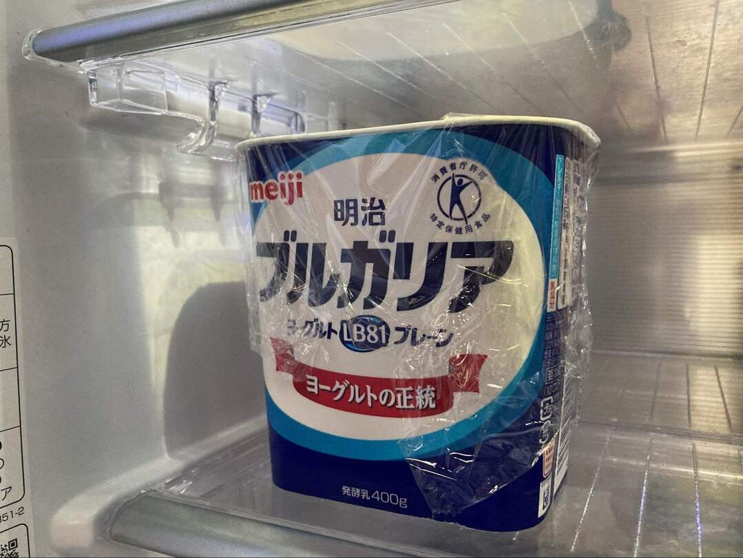 最初に大さじ4のヨーグルトを取り出しておいたので、容器にピッタリ収まります。
