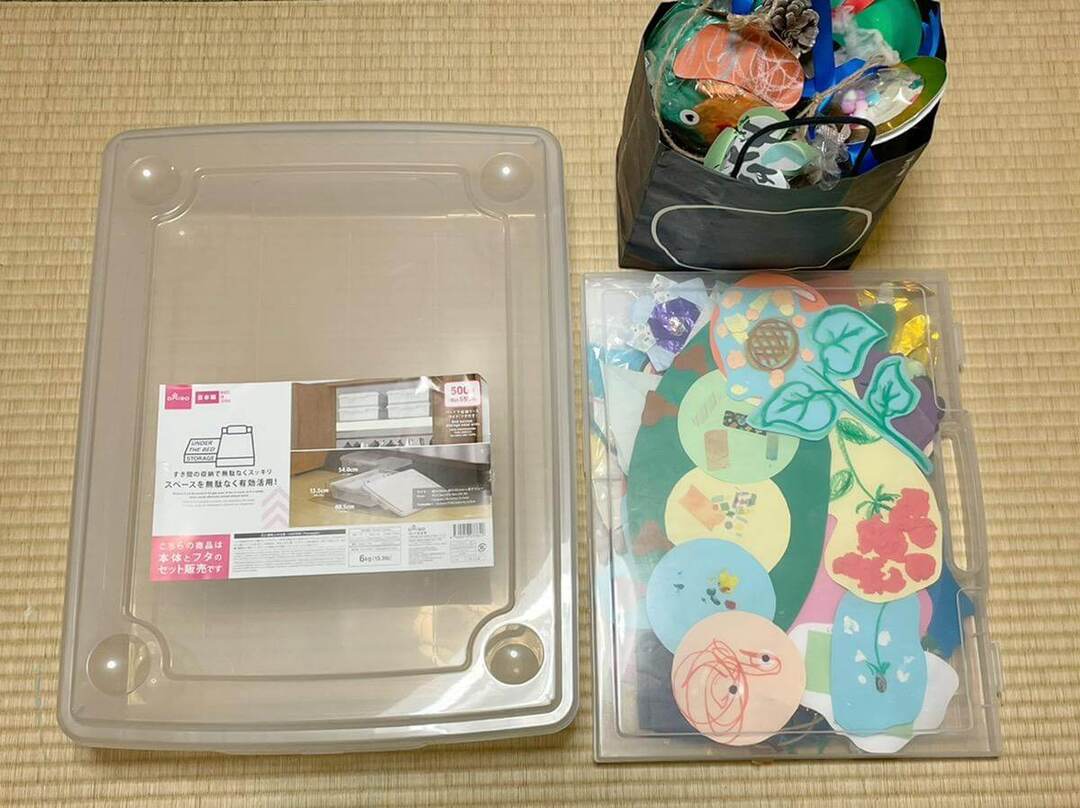 ダイソー「ベッド下収納ケースワイド」を使えば、次に祖父母に会えるときまで大事に息子の成長の思い出を残せそうです。