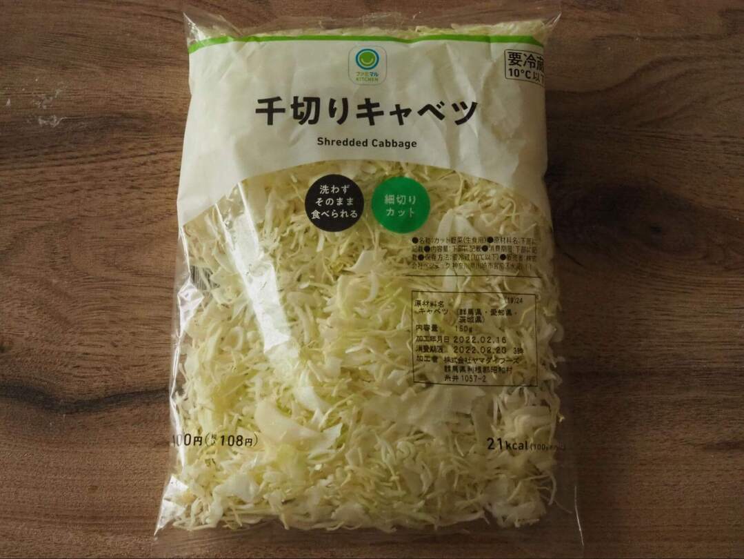 ご飯120gにこちらもファミリーマートで買ってきた千切りキャベツ。