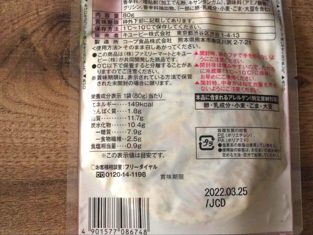 といわれてもなかなかピンと来ないと思いますが、ファミリーマートのお惣菜にはカロリーのほか、たんぱく質、脂質、塩分などの記載があるため、買い物の際に参考にしてみてください。