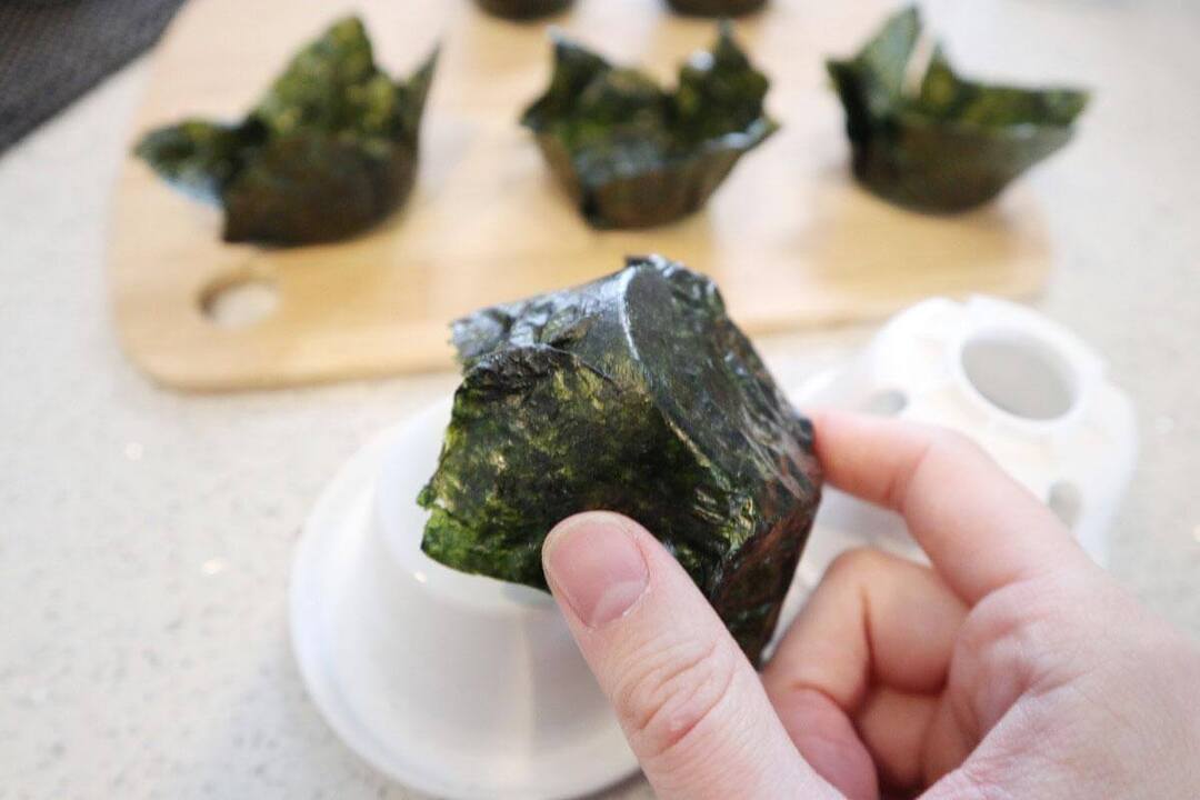 熱が冷めてからカップから海苔をはずすと、海苔カップの完成!
