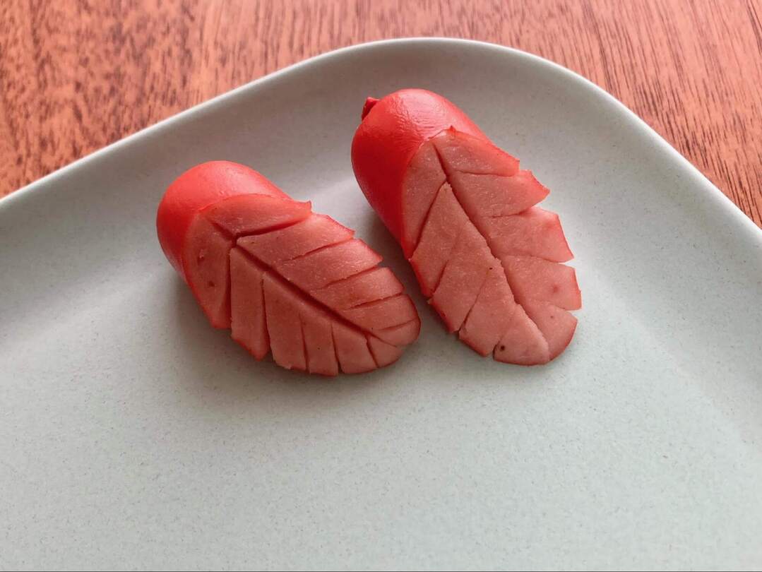 こちらもウインナー1本で2個できる「葉っぱ」です。