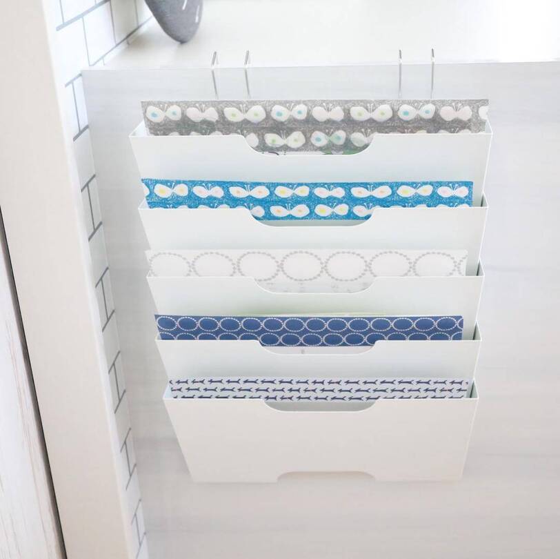 まずは、IKEA(イケア)の新聞ラックを使ったプリント管理のアイデアです。