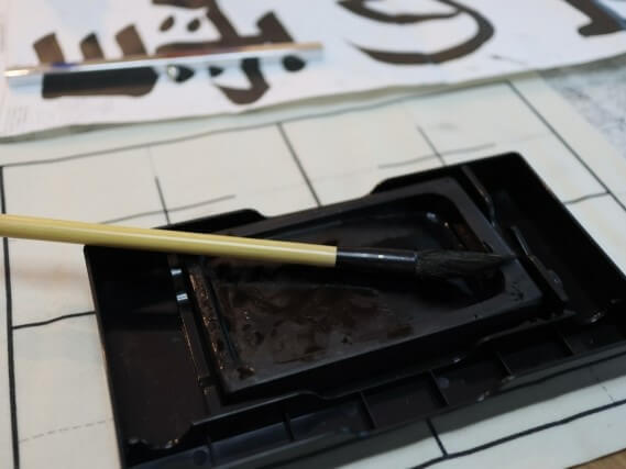 そのままこの中で筆を洗っていけば、墨汁で汚れた水が広がりません!なんと画期的…!