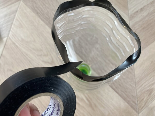 それぞれの切り口にビニールテープを巻いて、手を切らないように保護しておきます。
