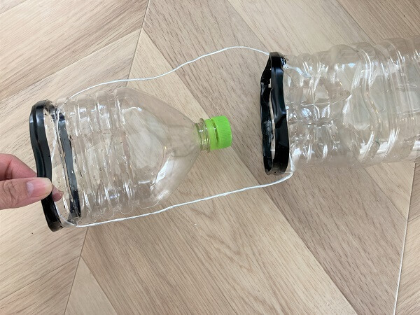 2つのパーツを1本のひもで上下につなげたら完成!