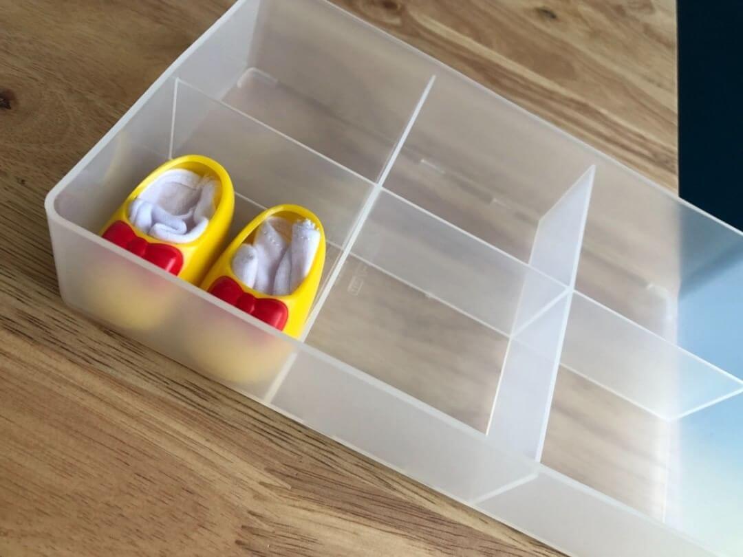 ソランちゃん・レミンちゃんの靴1足がセリアの仕切り付きケースにシンデレラフィット!